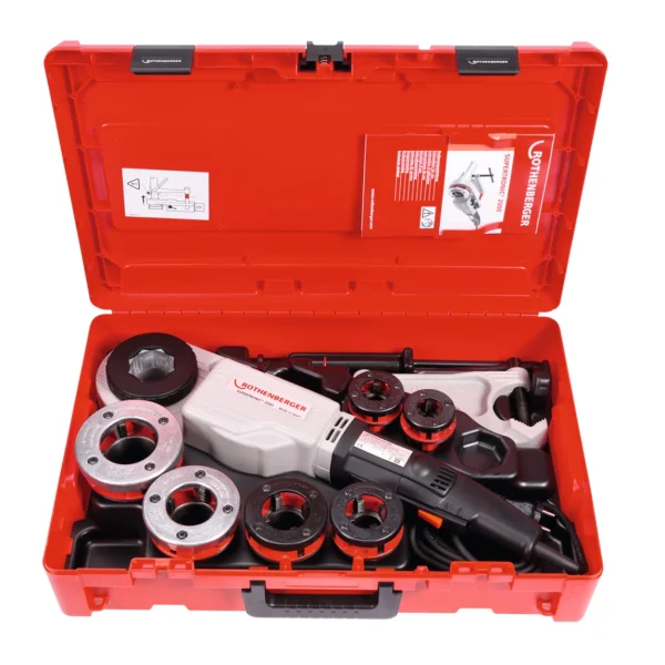 ROTHENBERGER SUPERTRONIC 2000 E – 1/2″ to 2″ BSPT – incl Pipe Clamp, ROFIX adaptor, Battery & Charger
